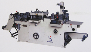 This JMQ-320A fully automatic self adhesive die cutting machine is used for high precision die cutting, shifting and slitting materials by flatting the materials. On the two sides of the printed label and the vertical direction there are three photoelectric eyes for tracking and positioning, so die cutting, collecting waste film, slitting or automatic labeling can be accomplished in one process. Moreover, our product is very suitable for die cutting paper adhesive tape label, Dacron film trademark and laser anti-fake trademark in the electronic and adhesive tape industries. It is an ideal device to cooperate with soft printing machine, continuous screen printing machine, photogravure press and anti-fake trademark molding machine, etc.
