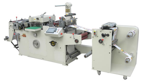 This JMQ-320C computerized multifunction die cutting machine is applicable for high precision die cutting, shifting and slitting materials by flatting the materials, as well as it is totally controlled by computer. In its vertical direction and on the two sides of the printed label there are three photoelectric eyes for tracking and positioning, so die cutting, coating film, collecting waste film, slitting or automatic labeling can be accomplished in one process. In general, our product is very suitable for die cutting Dacron film trademark, paper adhesive tape label, and laser anti-fake trademark in the electronic, adhesive tape industries. What's more, it is usually used to cooperate with soft printing machine, continuous screen printing machine, photogravure press and anti-fake trademark molding machine, etc.